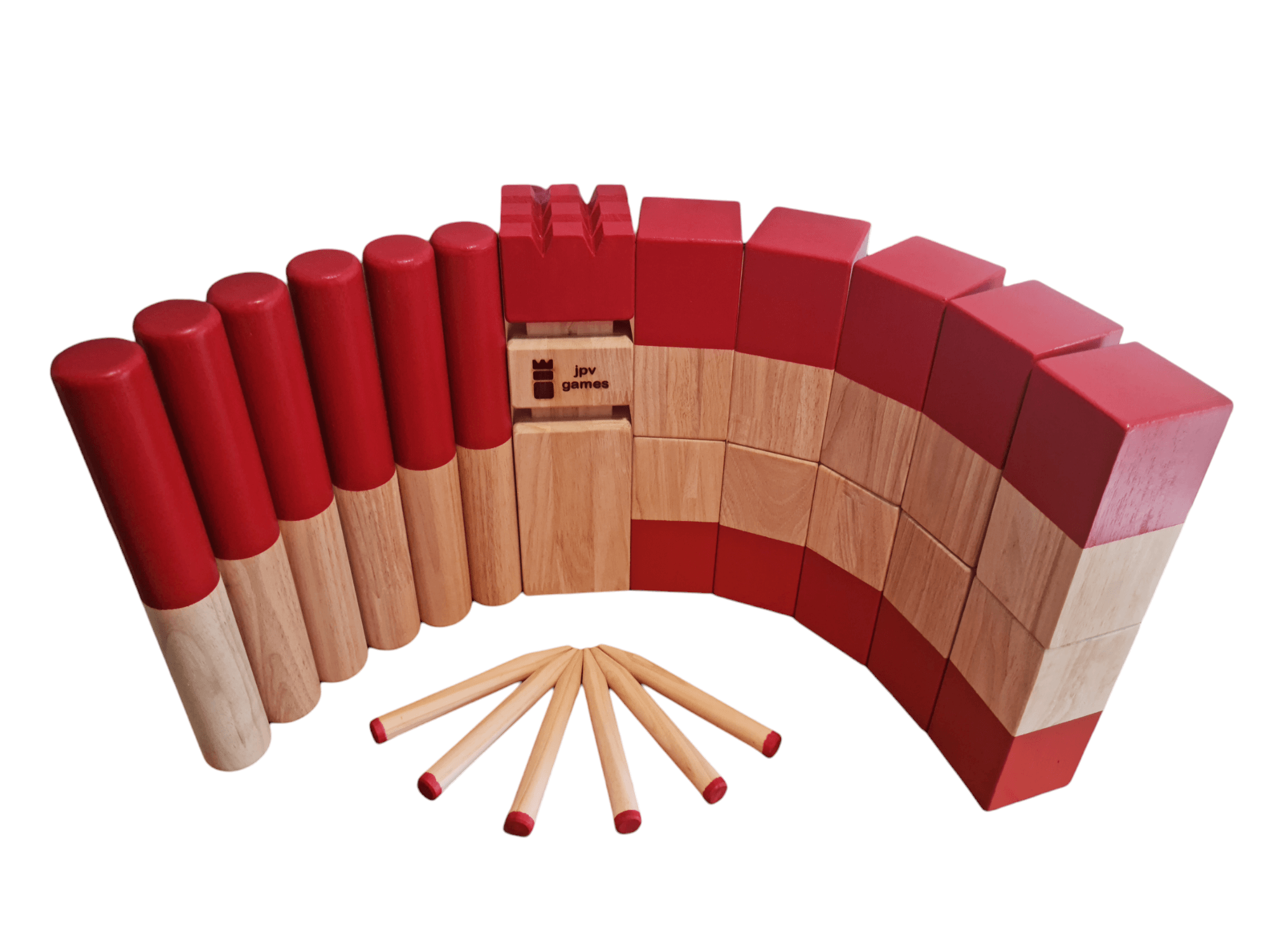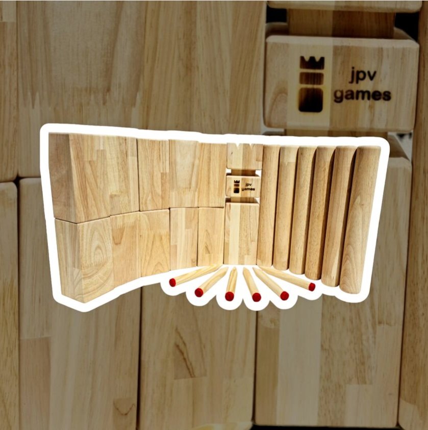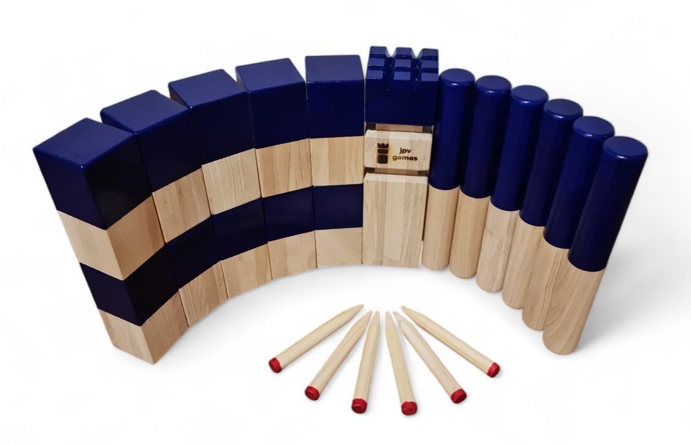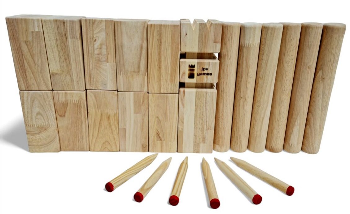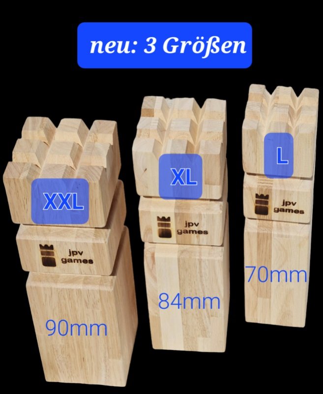 • nur bei jpv games: Kubbs und Wurfhölzer sind qualitätsgescheckt und bei XL- und XXL-Sets jeweils mit gleichen Gewichten, also keine besonders leichten Hölzer dazwischen