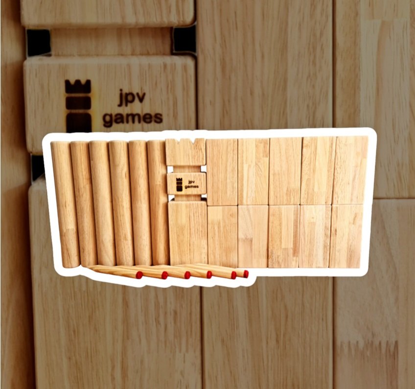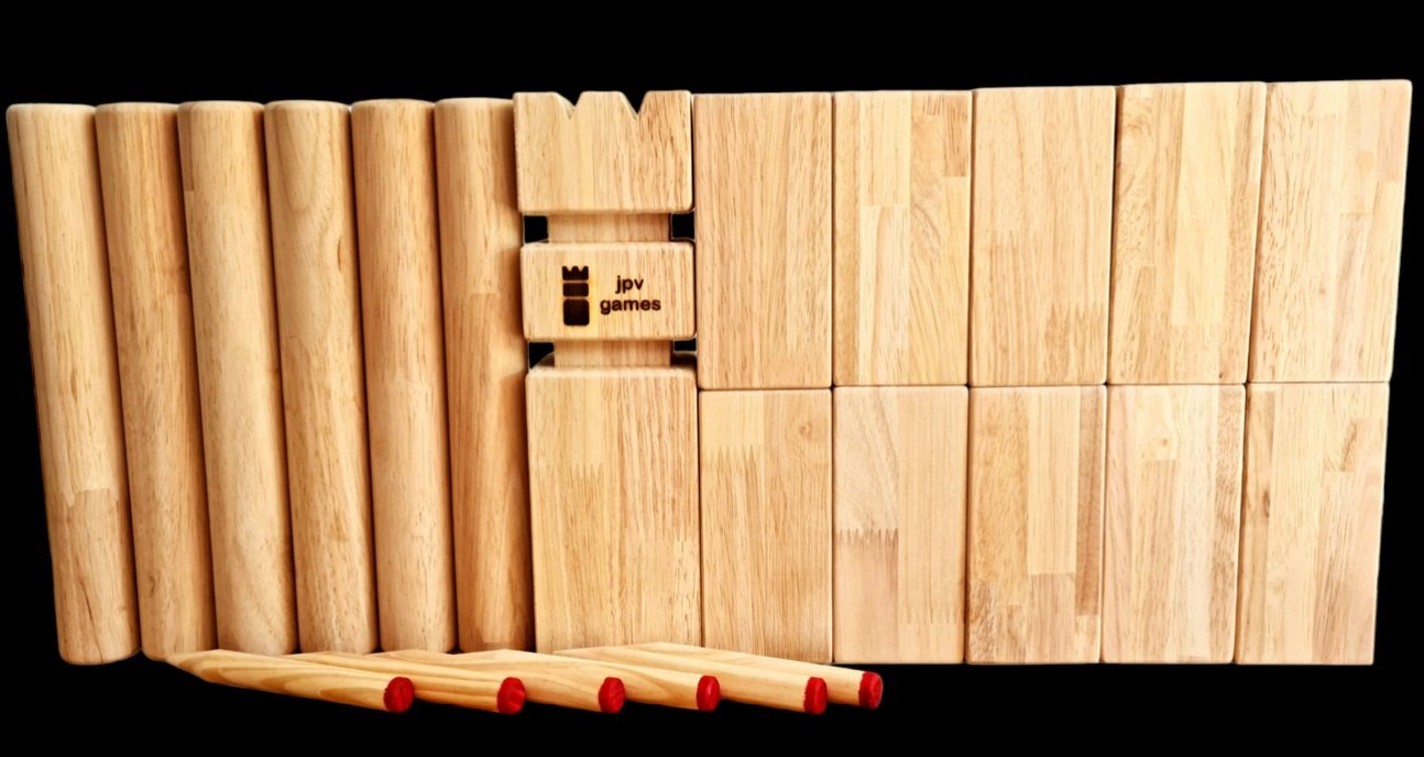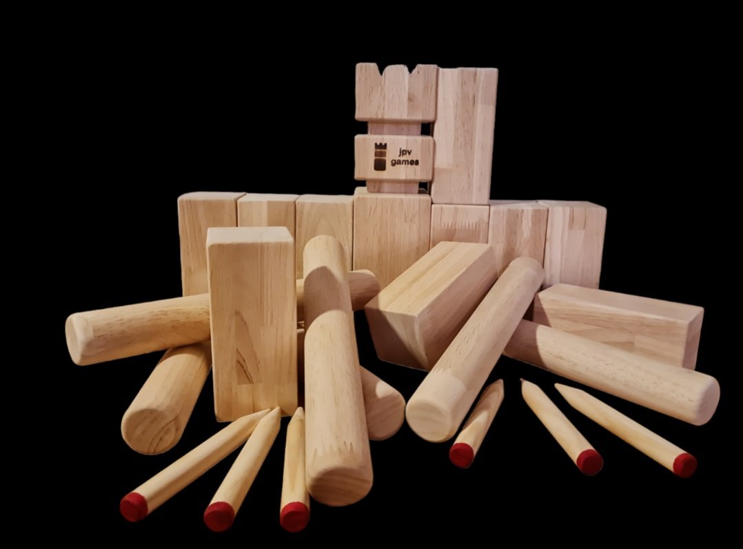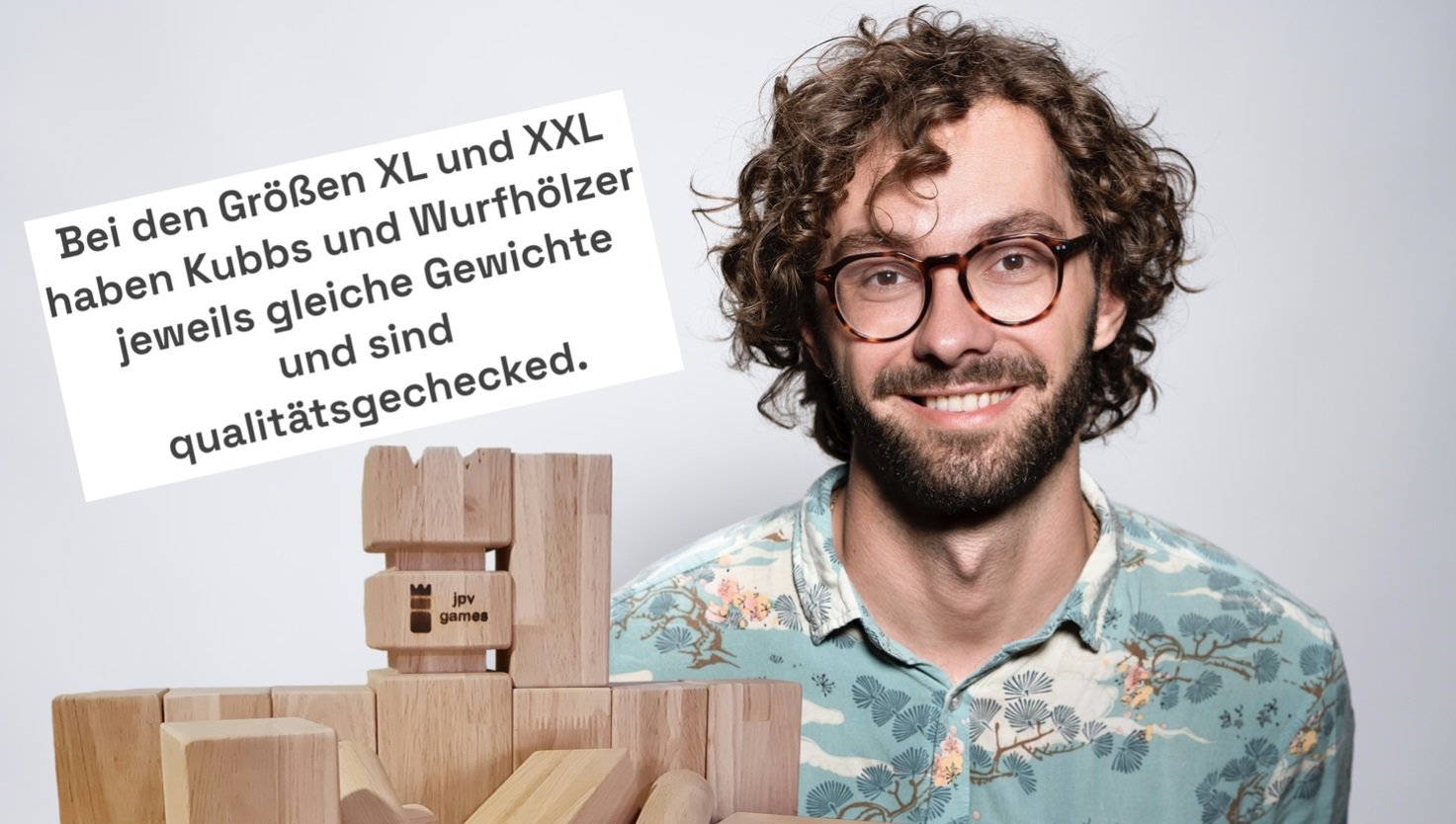 - nur bei jpv games: Kubbs und Wurfhölzer sind qualitätsgescheckt und bei XL- und XXL-Sets jeweils mit gleichen Gewichten, also keine besonders leichten Hölzer dazwischen